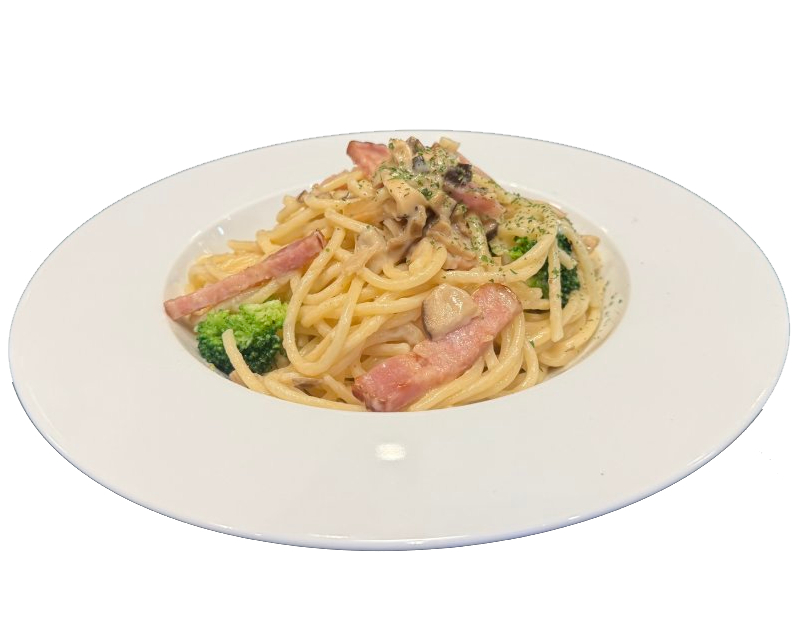 ベーコンとキノコのクリームパスタ